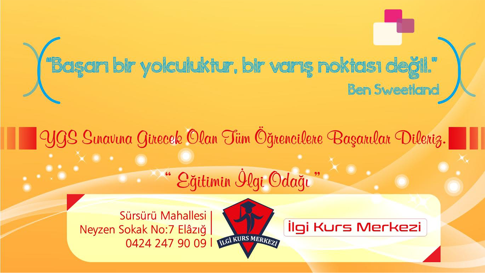 İLGİ Kurs Merkezi Öğretim Kursu 2015 yılında Elazığ’da kurulmuştur. Öncesinde Eğitim Danışmanlığı Kariyer Merkezi adıyla hizmet veren kurumumuz dershanelerin kapatılmasıyla Özel Öğretim Kursu statüsü kazanmıştır.